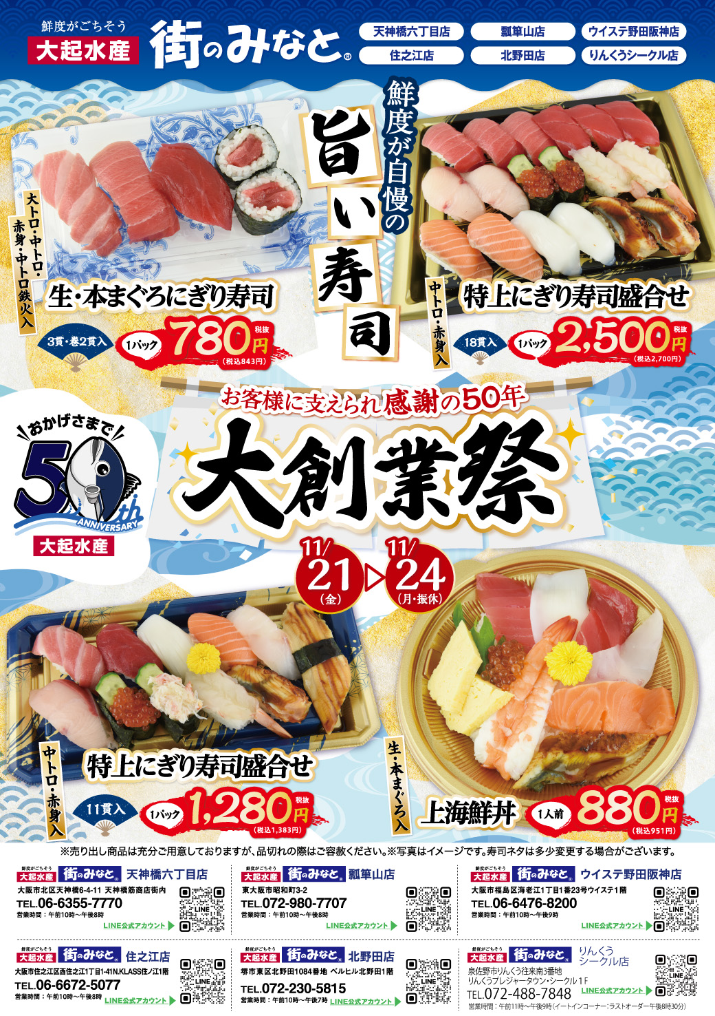 【11/21㊎~11/24㊊振替休日】大創業祭を開催!!<天神橋六丁目・瓢箪山・野田阪神・住之江・北野田>