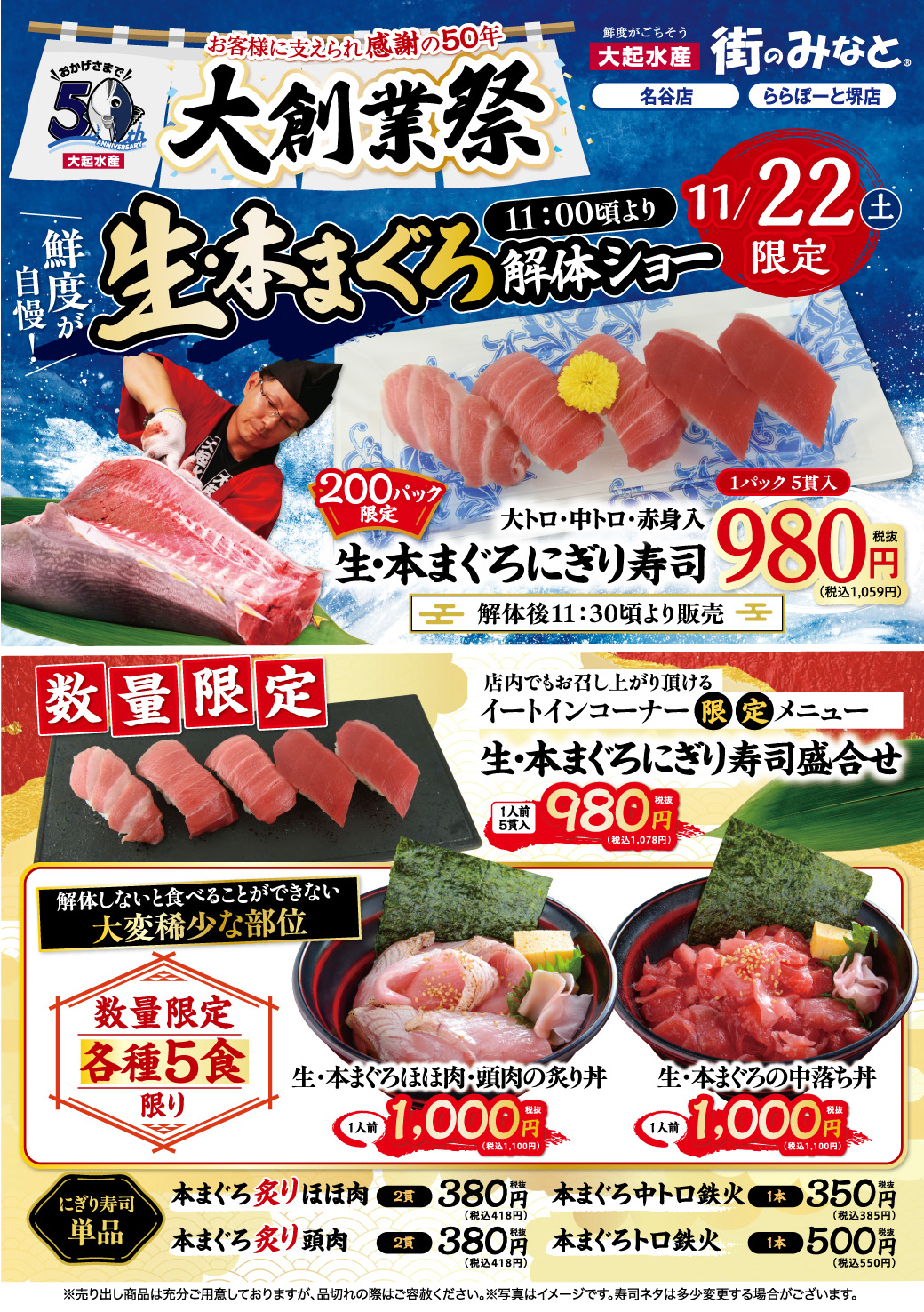 ◆◆11/22㊏限定 生・本まぐろ解体ショーを11時頃より開催!◆◆