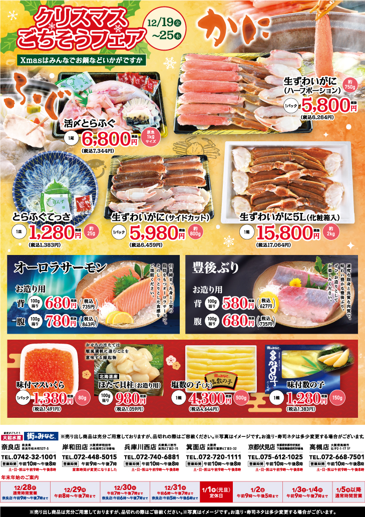 街のみなと対象店舗にて「クリスマスごちそうフェア」を開催いたします。