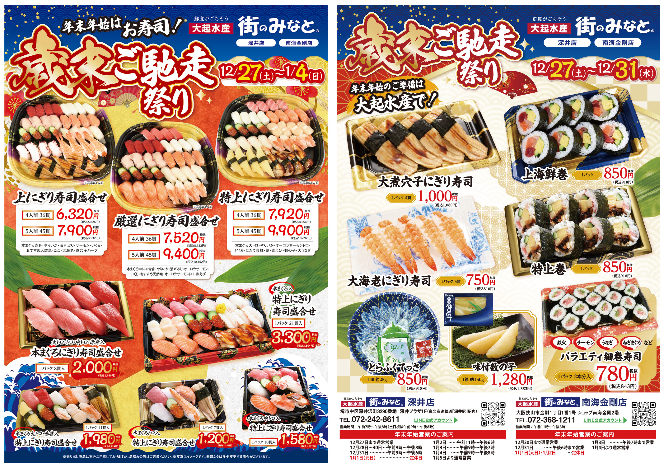 12/27(土)~1/4(日)の期間中、街のみなと 深井店・南海金剛店にて「歳末ご馳走祭り」を開催いたします。