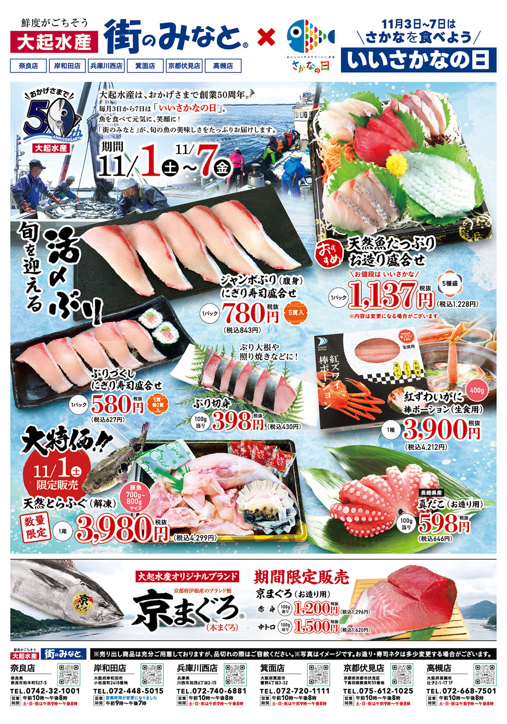 【11/3(月)~11/7(金)】いいさかなの日に合わせて天然魚たっぷりのお造りや今旬の活〆ぶりをご用意!!