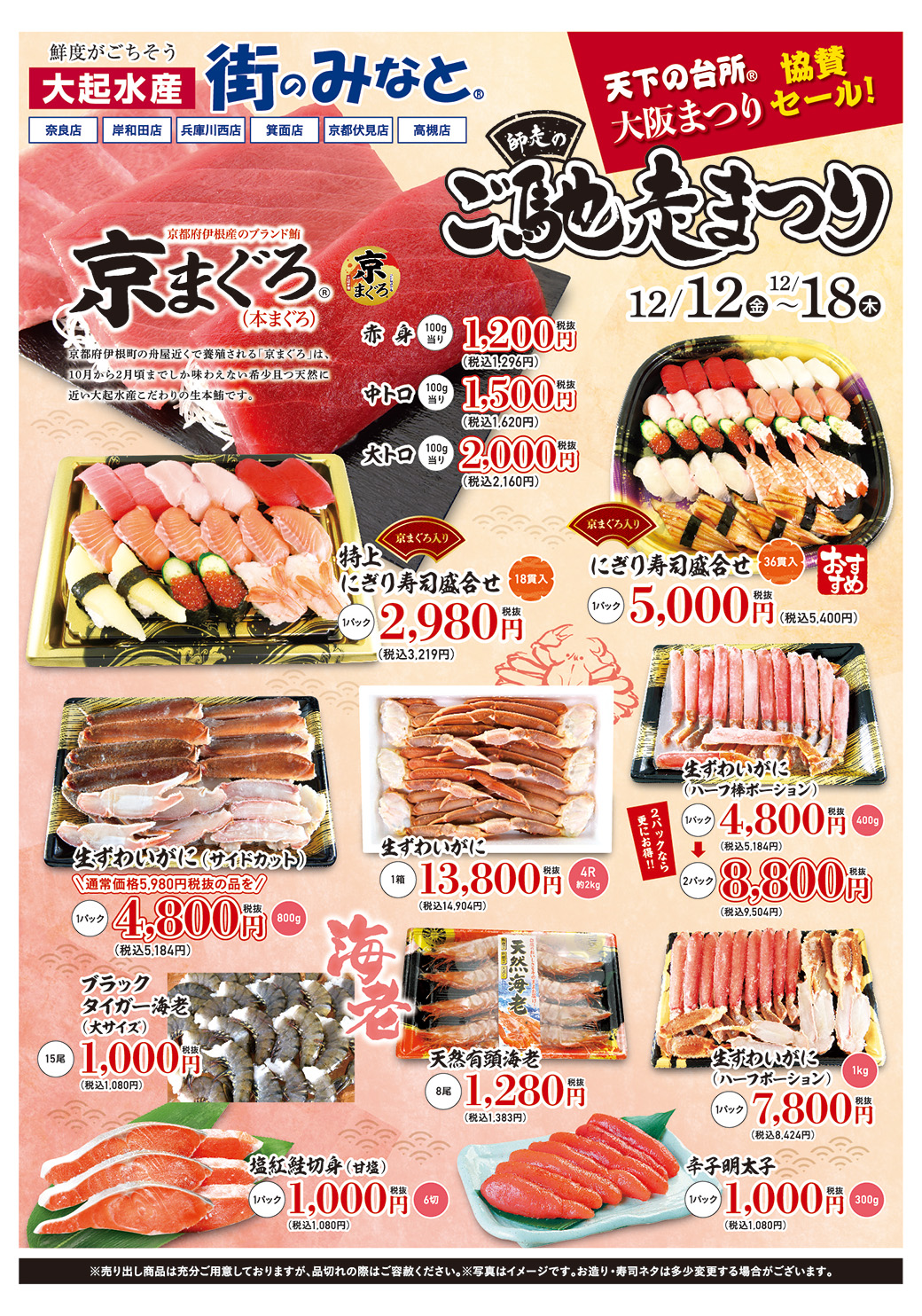 \天下の台所Ⓡ大阪まつり協賛/ 街のみなと対象店舗にて『師走のご馳走まつり』開催!【12/12㊎~18㊍】