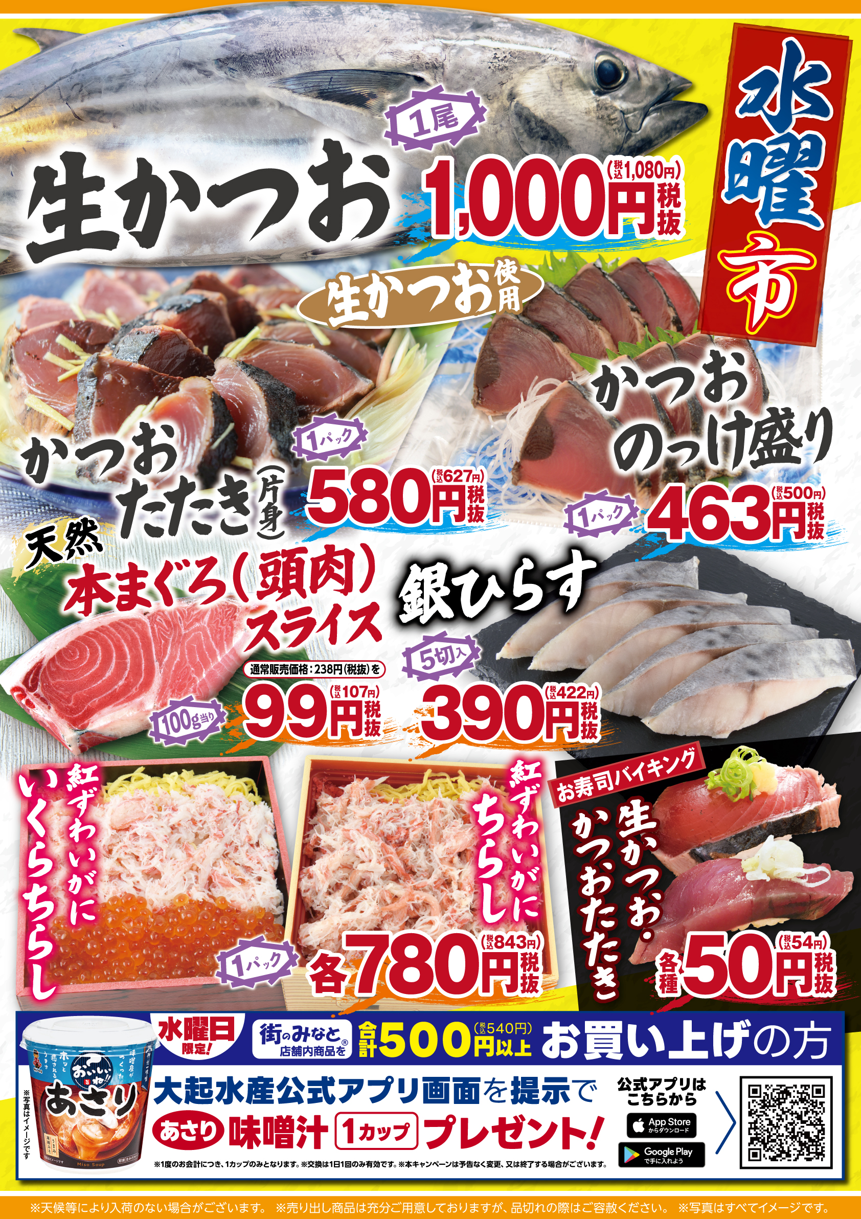 かつおたたき(片身)1パック 税抜580円(税込627円)