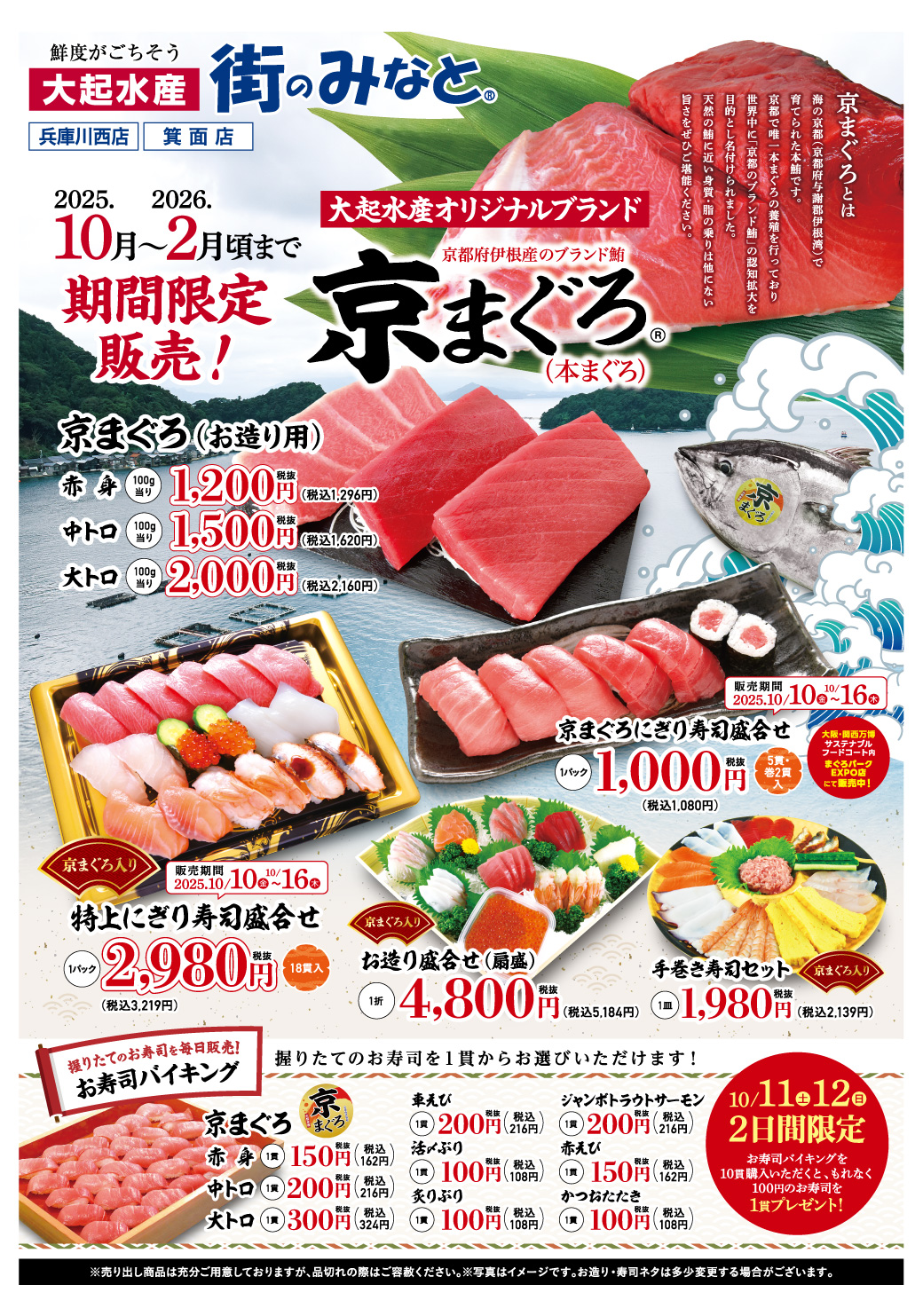 お寿司バイキングコーナーにも京まぐろ(赤身・中トロ・大トロ)が登場。