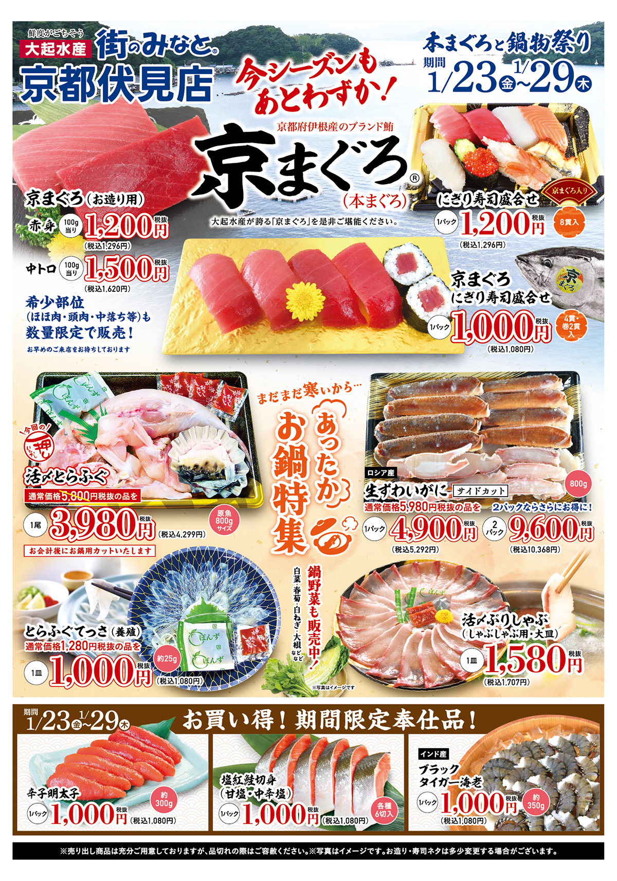 活ふぐ・ぶりしゃぶ・生ずわいがになど鍋用商材も充実。