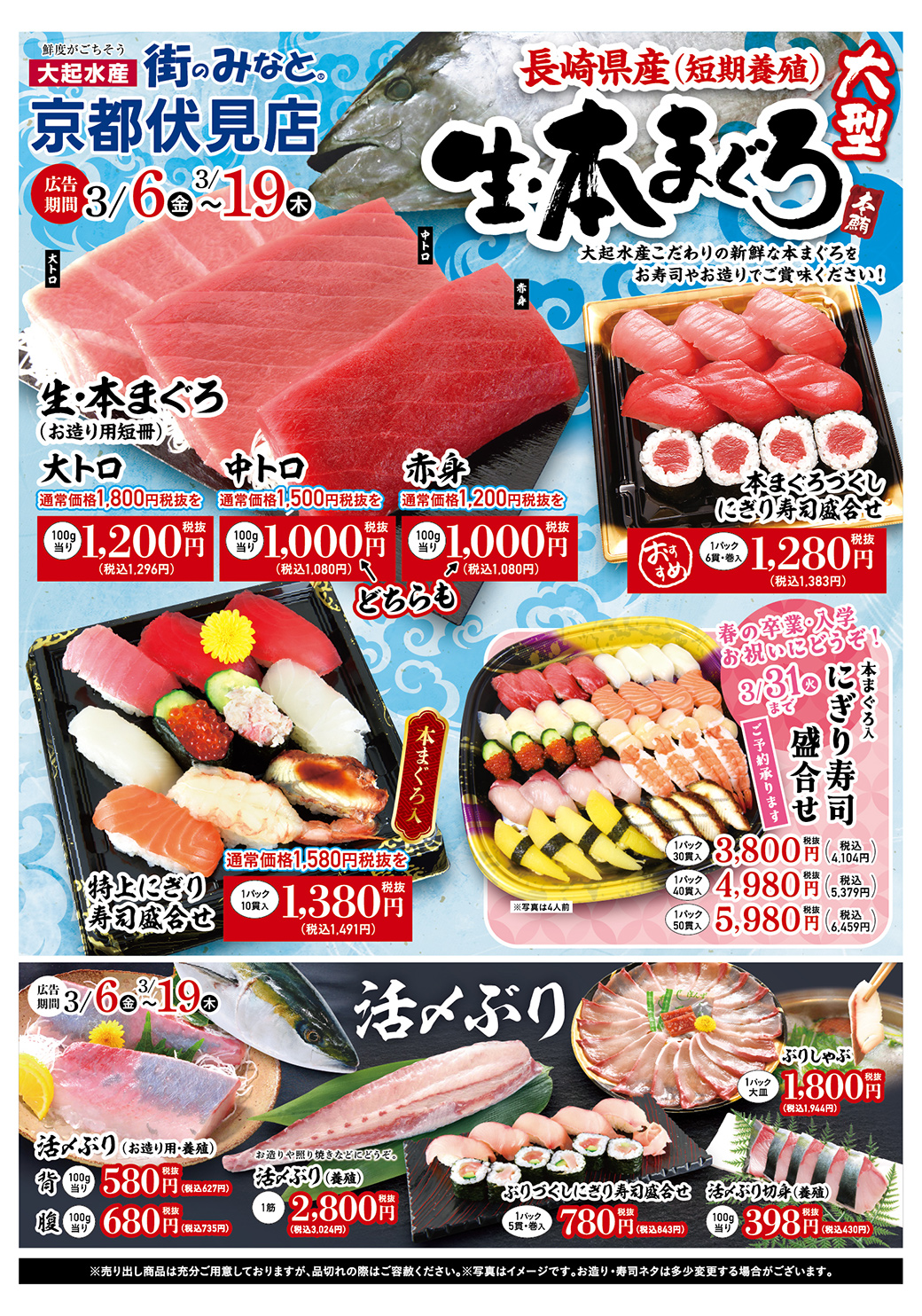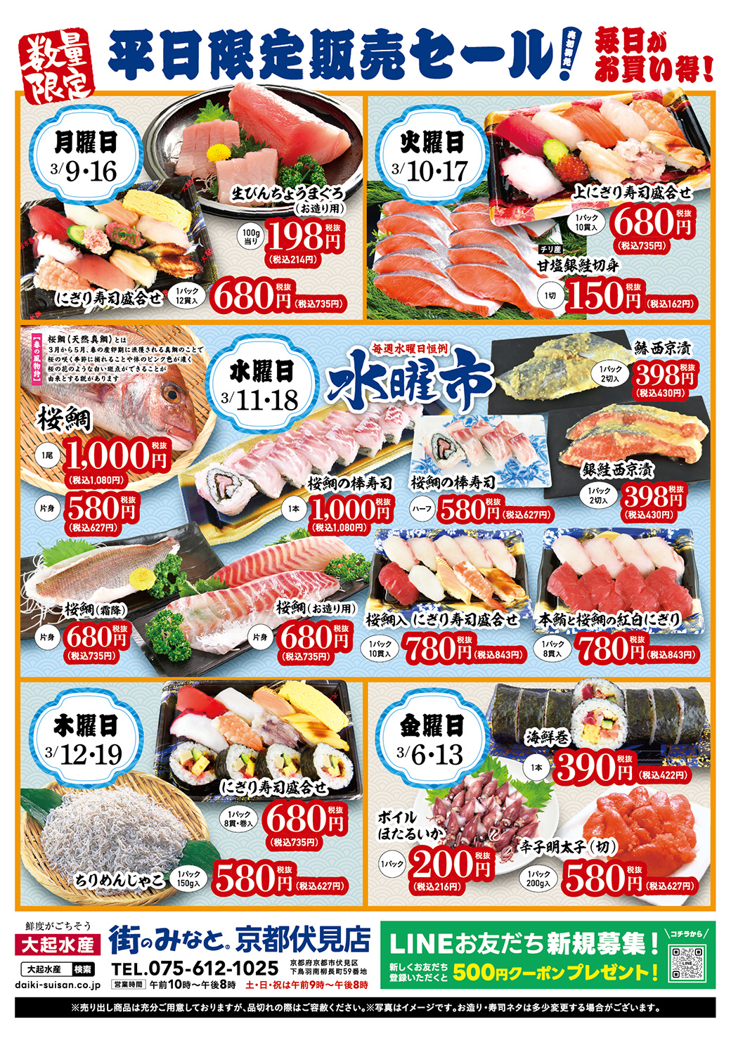 月曜の「生びんちょうまぐろ」から、水曜恒例の「桜鯛の水曜市」まで。